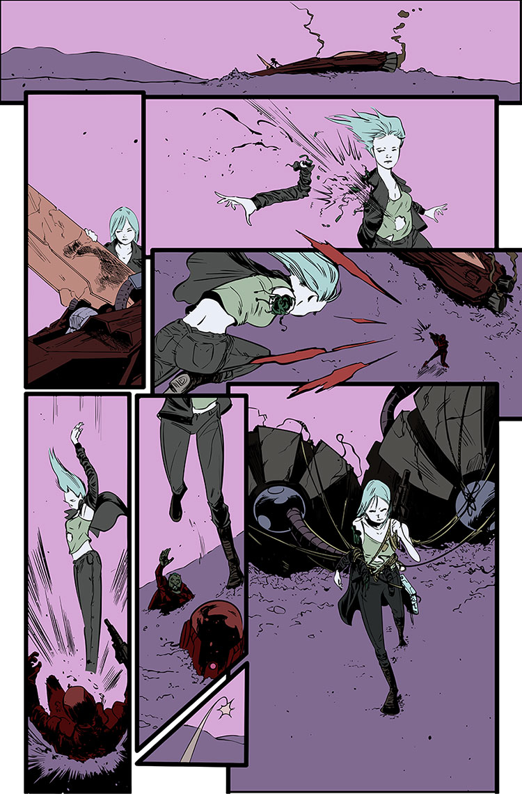 An android pilot named Maeve Osauran has rebooted from a disastrous accident. She repurposes what is left of her ship into a rocket bike and travels the galaxy getting into trouble.